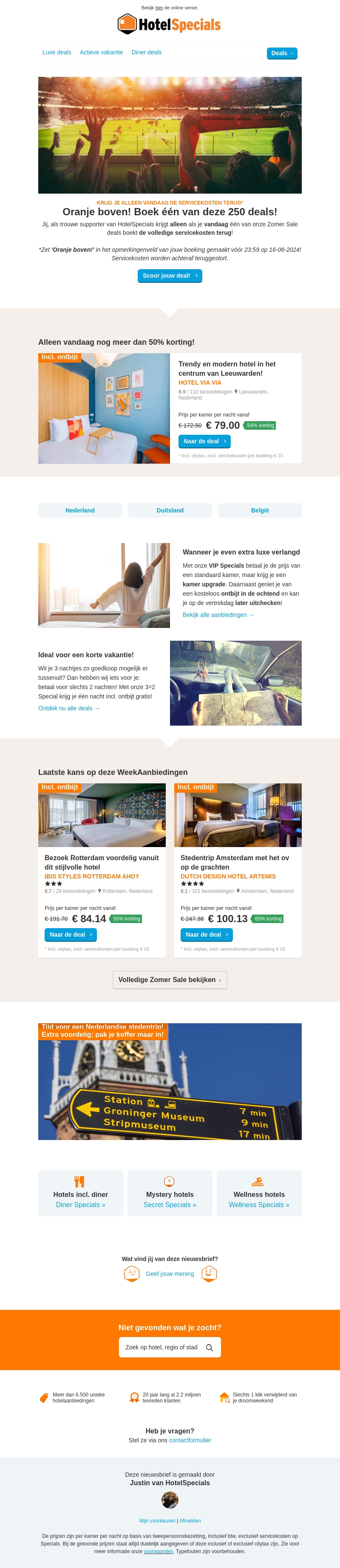 Mis deze exclusieve kans niet en profiteer vandaag nog van meer dan 250 speciale hoteldeals zonder servicekosten. Boek nu en geniet van geweldige kortingen en extra voordelen. Actie geldig tot 16-06-2024.