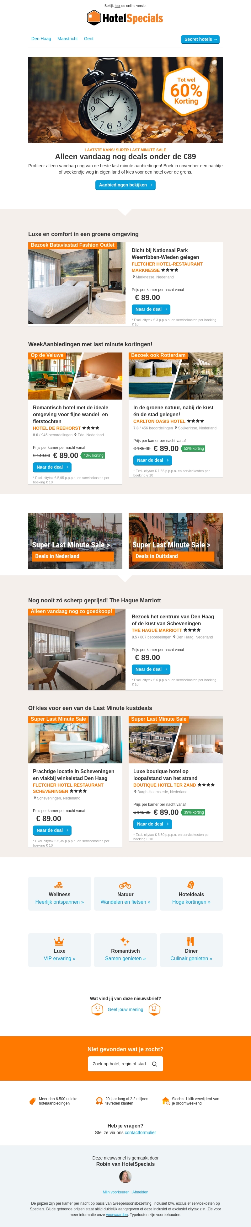 Grijp je kans met de Super Last Minute Sale bij HotelSpecials. Alleen vandaag profiteer je van geweldige kortingen tot wel 60% op hotels in heel Nederland en Duitsland. Ontdek luxe en comfort bij diverse locaties voor verblijven onder de €89. Haast je, want deze aanbiedingen zijn beperkt beschikbaar.