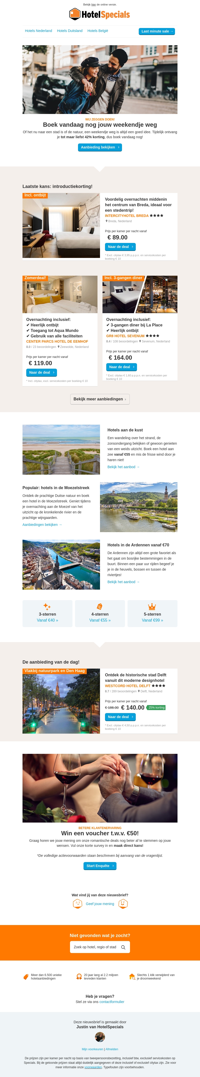 Ontdek prachtige hotels in Nederland, Duitsland en België met de beste deals. Boek vandaag nog jouw weekendje weg en geniet van korting tot wel 42%. Bezoek steden zoals Breda en Delft voor een unieke ervaring. Profiteer van aanbiedingen inclusief ontbijt, diner en toegang tot spa-faciliteiten. Mis deze kans niet en bekijk onze deals!