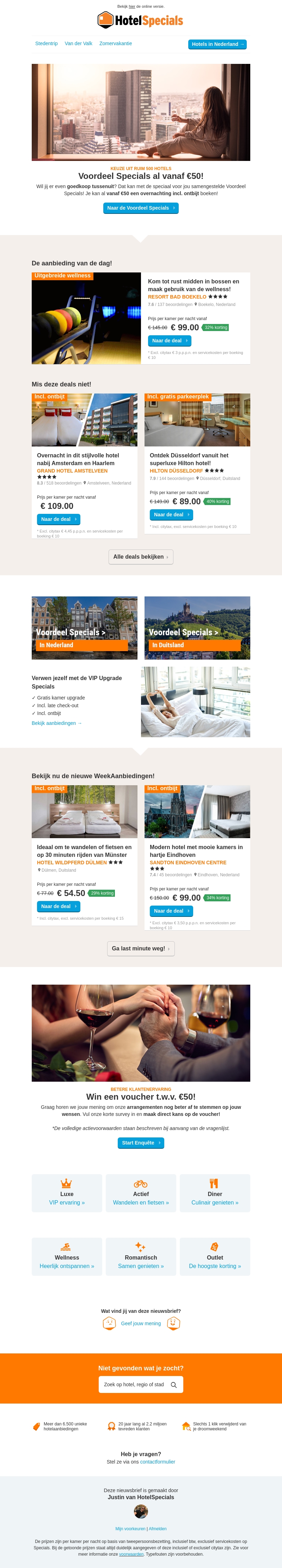 Ontvang de beste deals met Voordeel Specials vanaf slechts €50. Geniet van scherpe prijzen op hotelovernachtingen, inclusief ontbijt of andere extra's. Bekijk onze selectie en boek jouw volgende vakantie vandaag nog!