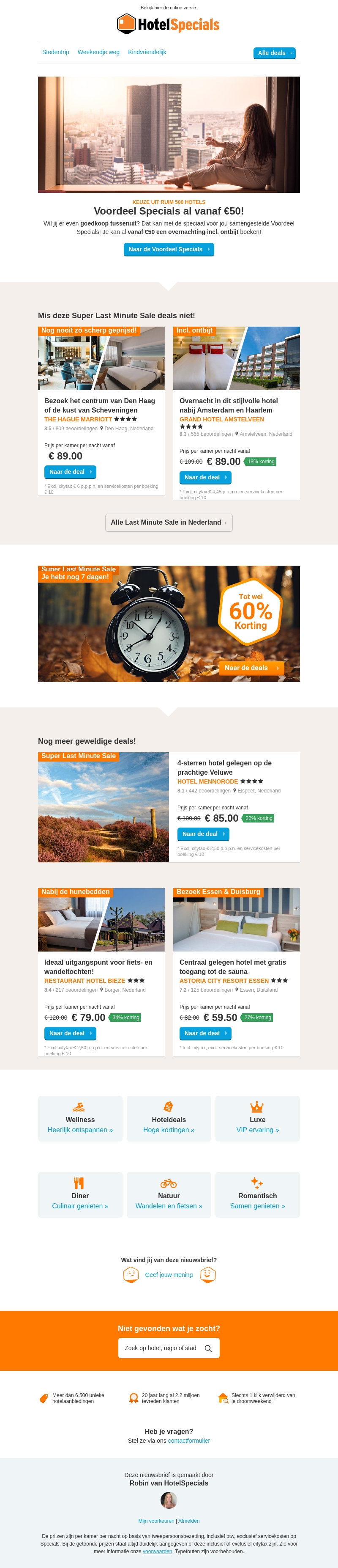Profiteer van de Voordeel Specials met hotels vanaf slechts €50 inclusief ontbijt. Ideaal voor een last-minute uitje. Boek nu een verblijf in Den Haag of Amstelveen met aantrekkelijke kortingen. Geniet van luxe, wellness en nog veel meer. Mis deze bijzondere aanbiedingen niet!