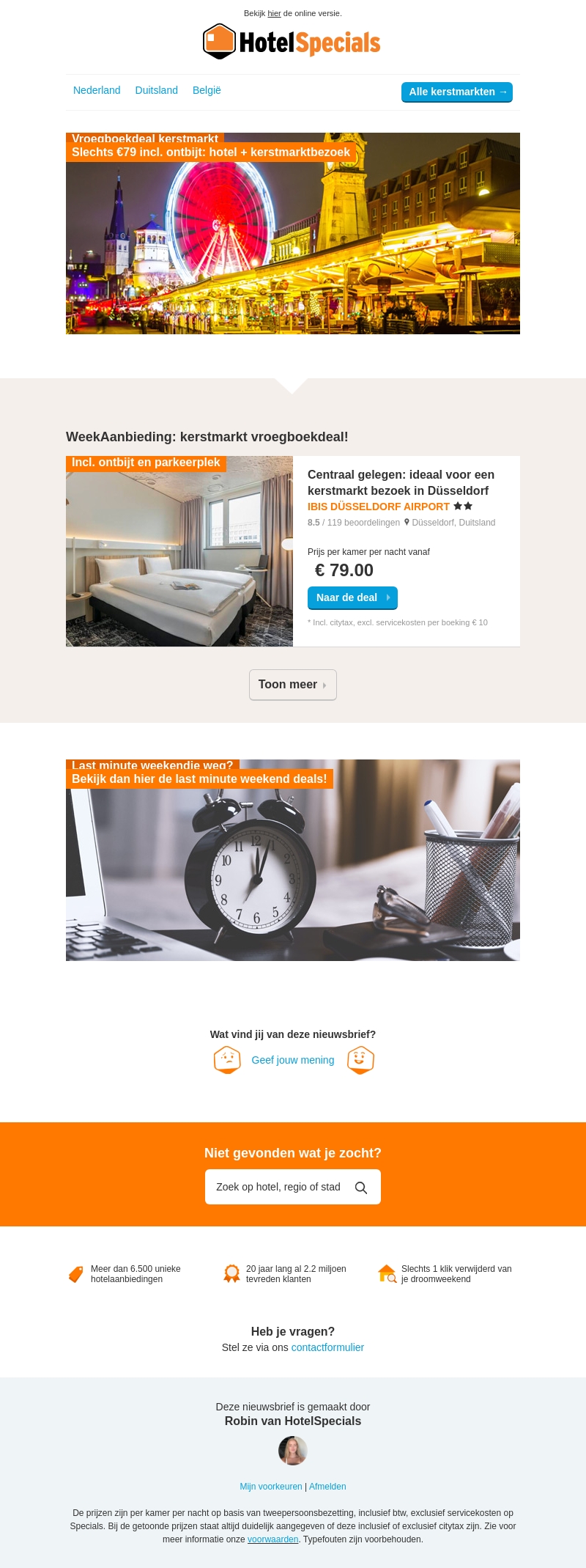 Profiteer van onze vroegboekdeal voor de kerstmarkt in Düsseldorf. Voor slechts €79 per nacht inclusief ontbijt verblijf je in het centraal gelegen IBIS DÜSSELDORF AIRPORT hotel. Ideaal voor een uitstapje naar de sfeervolle kerstmarkt. Beperk jouw kosten en geniet maximaal van de feestdagen!
