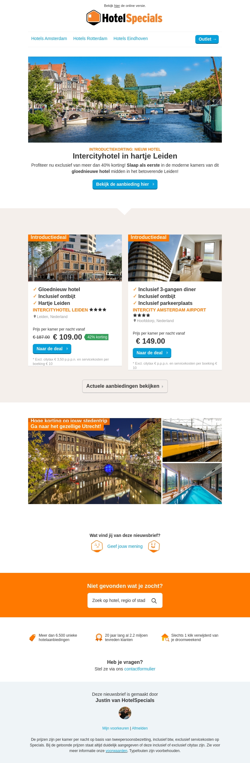 Profiteer van exclusieve kortingen tot 40% op verblijven in een gloednieuw hotel in het hart van Leiden. Inclusief ontbijt en voordelige prijzen vanaf €109 per nacht. Perfect voor een weekendje weg in Nederland!