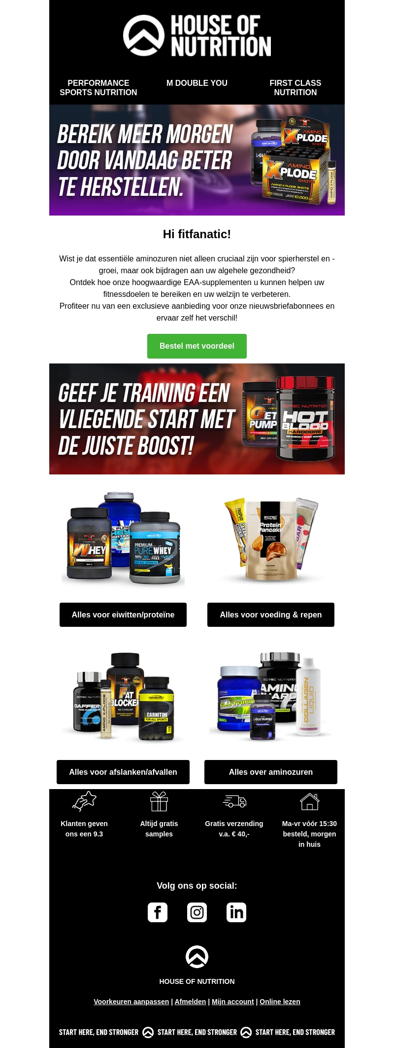 Verbeter je spierherstel met onze hoogwaardige EAA-supplementen. Ontdek hoe essentiële aminozuren niet alleen bijdragen aan je spiergroei, maar ook aan je algemene gezondheid. Profiteer nu van een exclusieve aanbieding speciaal voor onze nieuwsbriefabonnees. Bestel vandaag en ervaar het verschil in je training.
