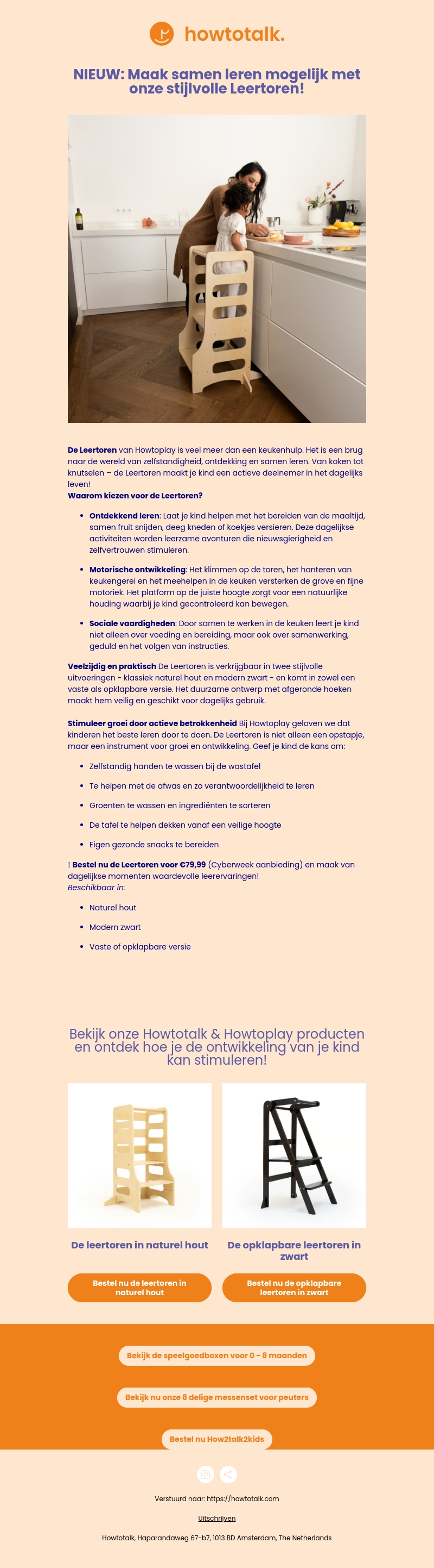 De Leertoren van Howtoplay is meer dan een hulpmiddel in de keuken. Het is een brug naar zelfstandigheid en ontdekking voor je kind. Van koken tot knutselen, de toren maakt dagelijks leren mogelijk. Beschikbaar in twee stijlvolle uitvoeringen voor een complete leerervaring.