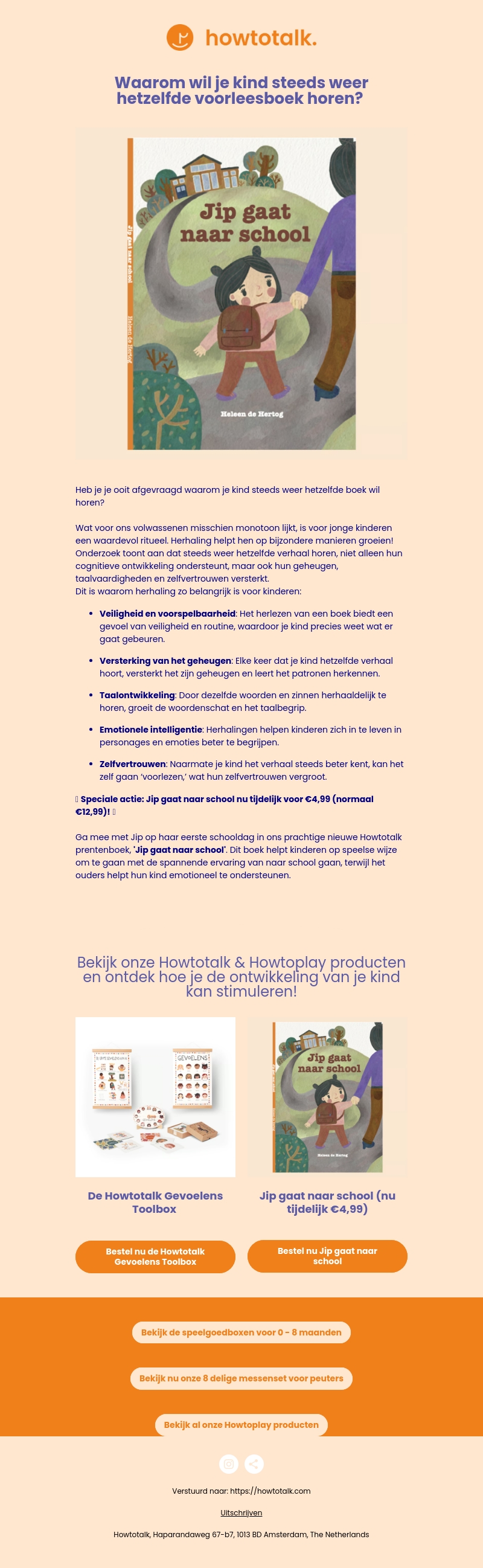 Voor kinderen is het herhalen van een boek een waardevol ritueel. Het biedt veiligheid, versterkt het geheugen en ondersteunt de taalontwikkeling. Ontdek de emotionele voordelen van herhaling voor je kind en de speciale aanbieding voor 'Jip gaat naar school'.