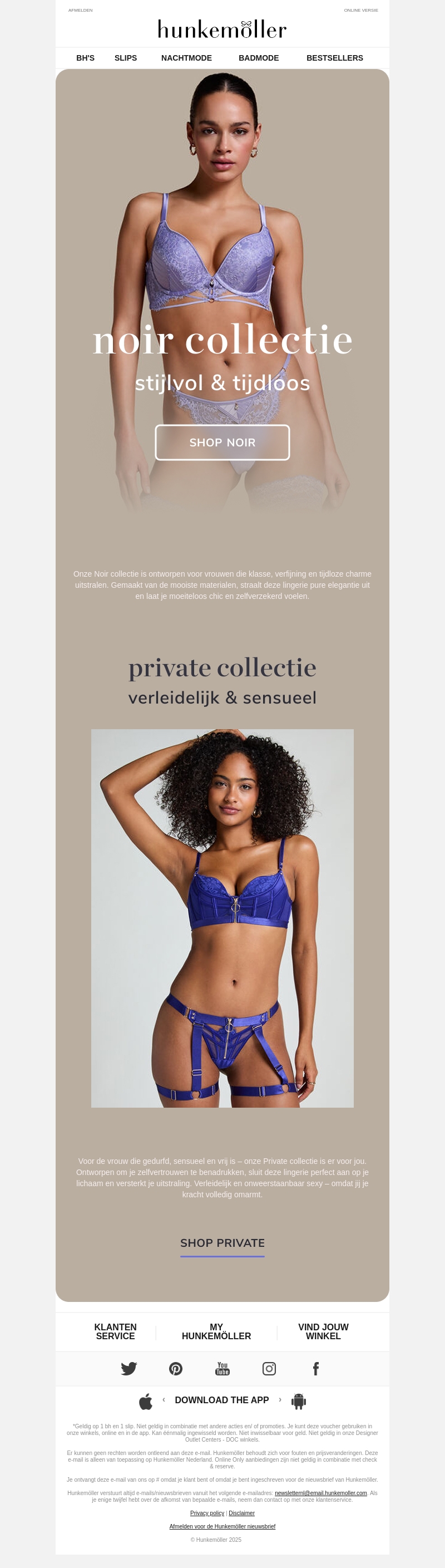 Hunkemöller presenteert de Noir en Private collecties, ontworpen om elke vrouw elegant en zelfverzekerd te laten voelen. De Noir collectie straalt klasse en tijdloze charme uit. De Private collectie is voor de vrouw die zich gedurfd en sensueel wil voelen. Ontdek luxe lingerie die perfect bij jouw stijl past.