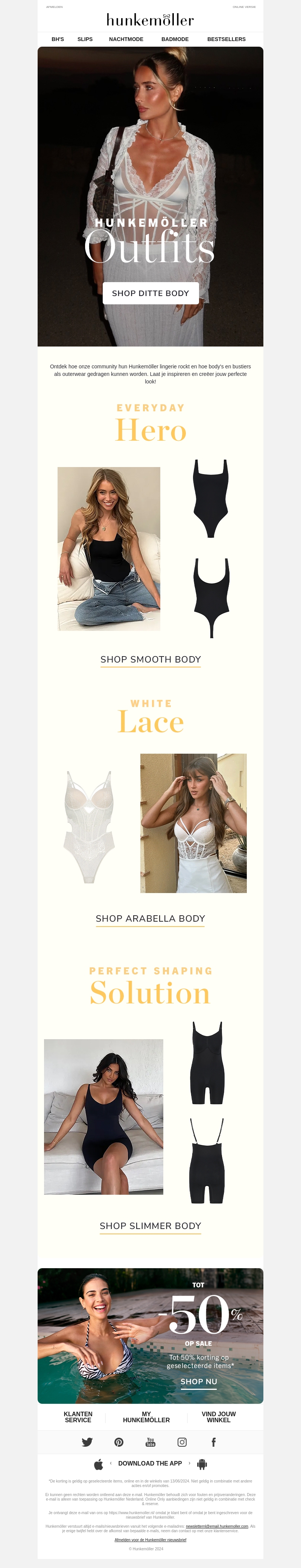 Creëer je perfecte zomerlook met de nieuwste collectie body’s en bustiers van Hunkemöller. Van everyday hero's tot verfijnde witte kant en perfecte shaping oplossingen, er is voor ieder wat wils. Profiteer nu van tot 50% korting op geselecteerde items.