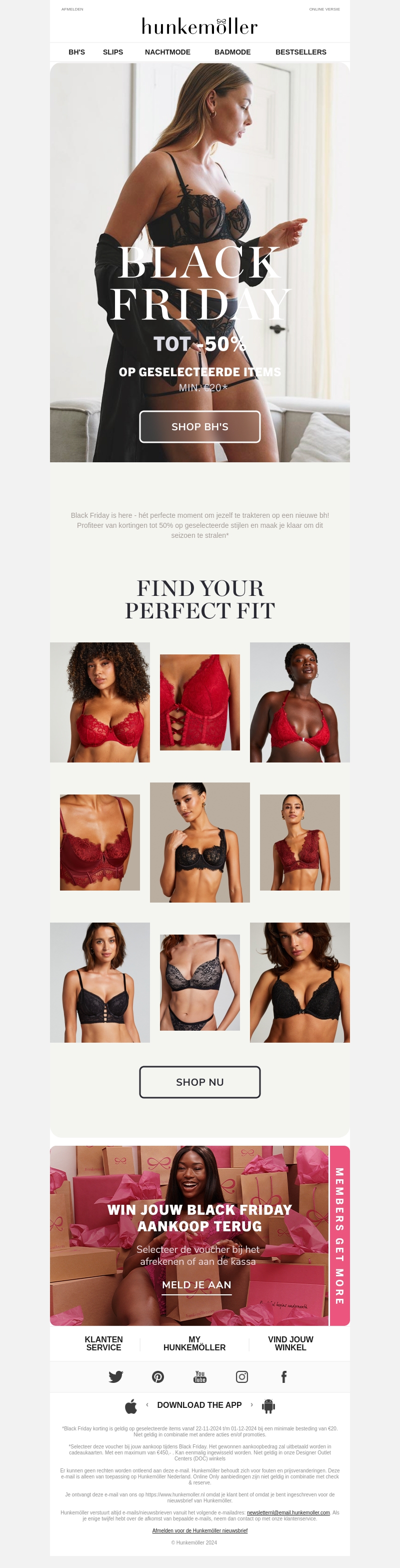 Ontdek de nieuwste collectie bh's met kortingen tot 50% tijdens de Black Friday uitverkoop bij Hunkemöller. Of je nu op zoek bent naar comfortabele of verleidelijke stijlen, er is voor ieder wat wils. Profiteer nu van deze geweldige aanbiedingen en vind de perfecte pasvorm die bij jouw stijl past. Maak van deze Black Friday een gelegenheid om jezelf te verwennen.