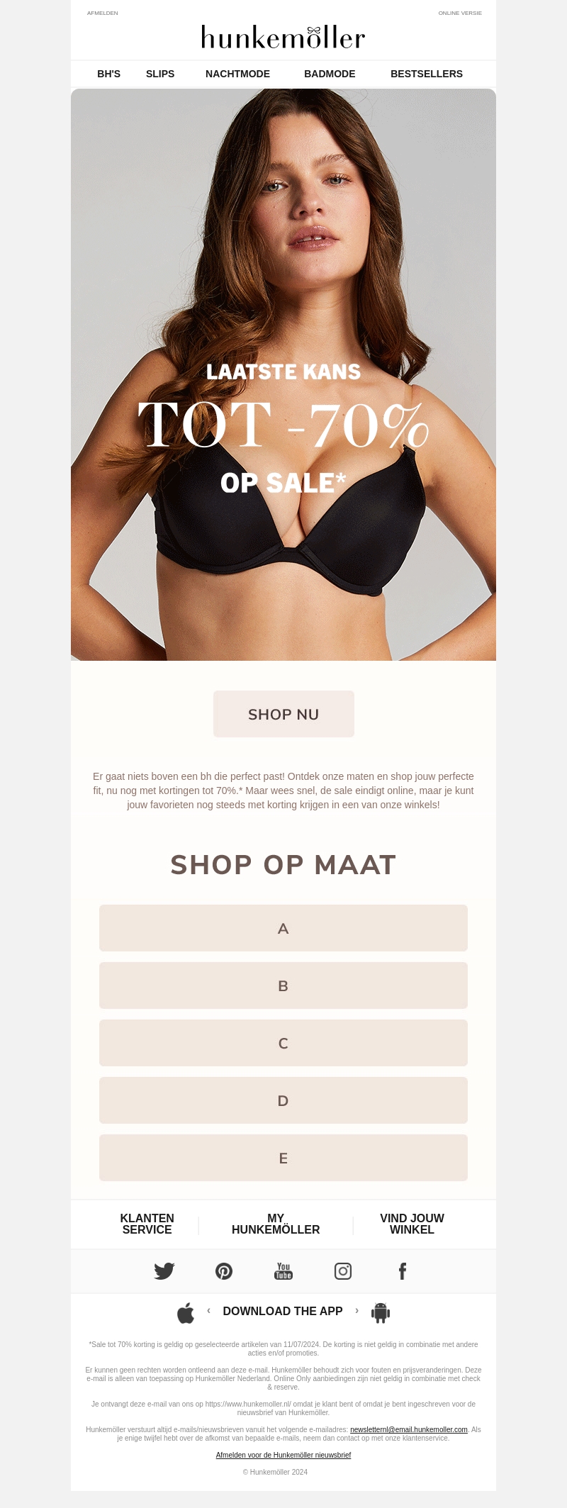 Ervaar het ultieme in comfort en stijl met Hunkemöller's uitverkoop. Ontvang tot 70% korting op geselecteerde lingerie. Deze aanbieding eindigt vandaag, dus weest snel en shop nu om jouw favoriete items te bemachtigen voordat ze weg zijn. Vind jouw perfecte pasvorm en geniet van grote besparingen.