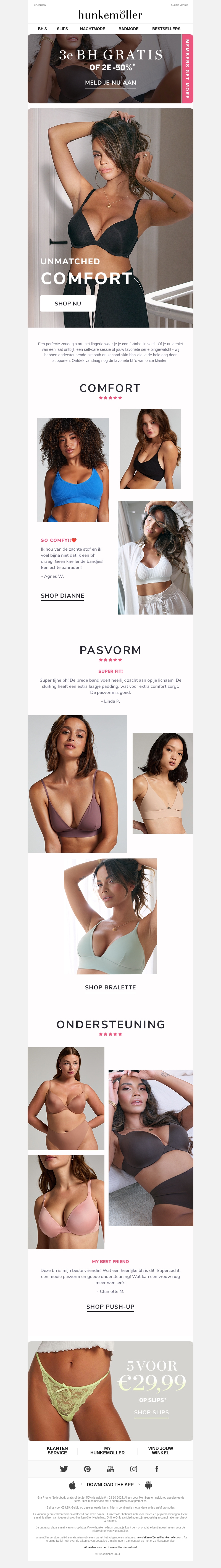 Hunkemöller biedt een onweerstaanbare actie: ontvang je derde BH helemaal gratis of je tweede BH met 50% korting. Kies uit een breed scala aan stijlen die ultiem comfort en pasvorm garanderen. Mis deze fantastische aanbieding niet en vernieuw je lingerielade vandaag nog.