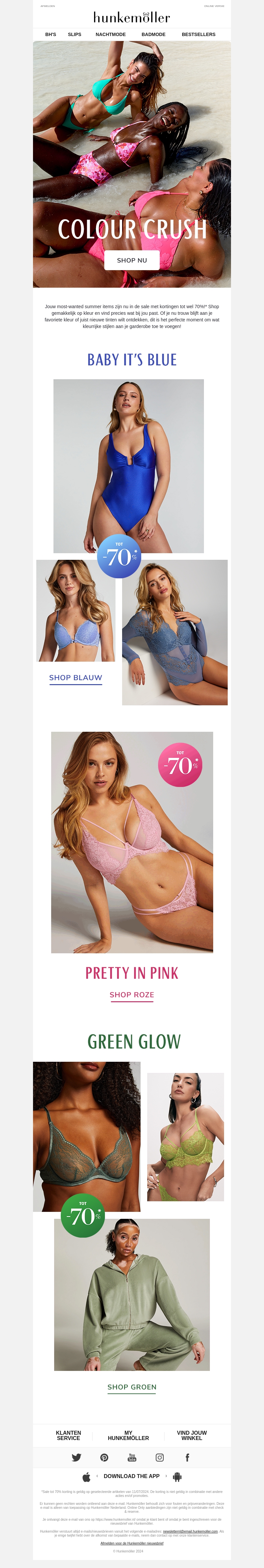 Ontdek de beste zomerdeals met kortingen tot 70%! Verwen jezelf met nieuwe lingerie uit onze nieuwste collectie. Van blauw en roze tot groen, wij hebben de perfecte kleur voor jou.