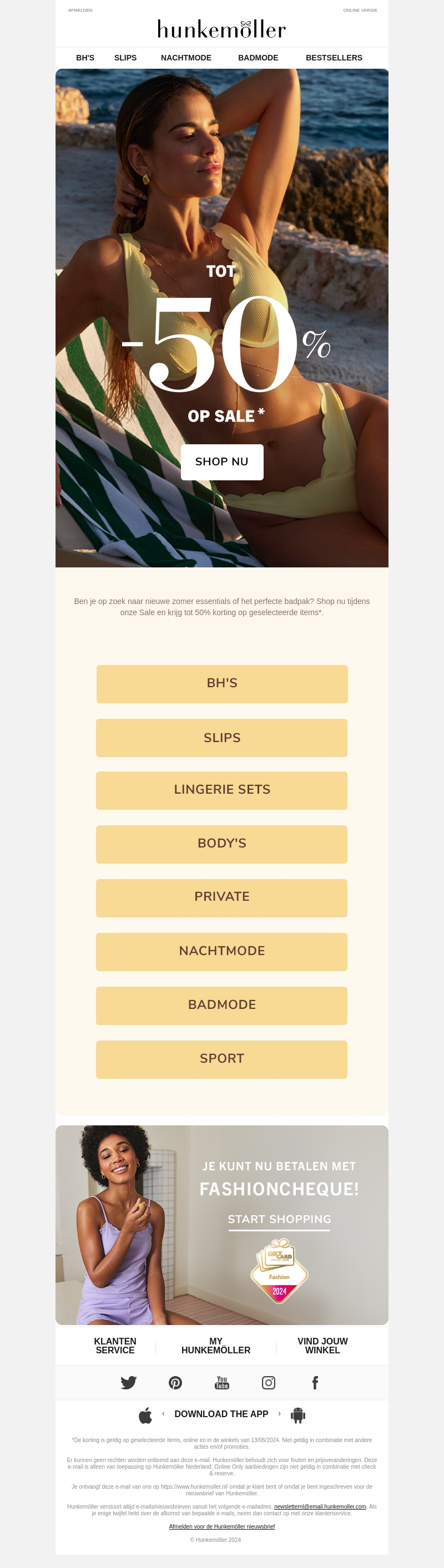 De grote SALE is begonnen bij Hunkemöller met kortingen tot 50% op geselecteerde items! Ontdek de nieuwste zomer essentials en de perfecte badpakken. Mis deze kans niet en shop nu jouw favoriete items voor minder.