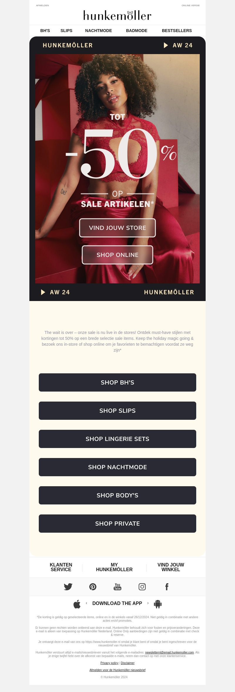 De Hunkemöller sale is nu gestart met kortingen tot 50% op geselecteerde artikelen. Bezoek onze winkels of shop online voor de beste deals op lingerie, slips, body’s en meer. Stel je favoriete outfits samen uit een brede selectie aan stijlen. Wacht niet te lang, de kortingen zijn tijdelijk. Mis deze kans niet om jouw garderobe te vernieuwen.