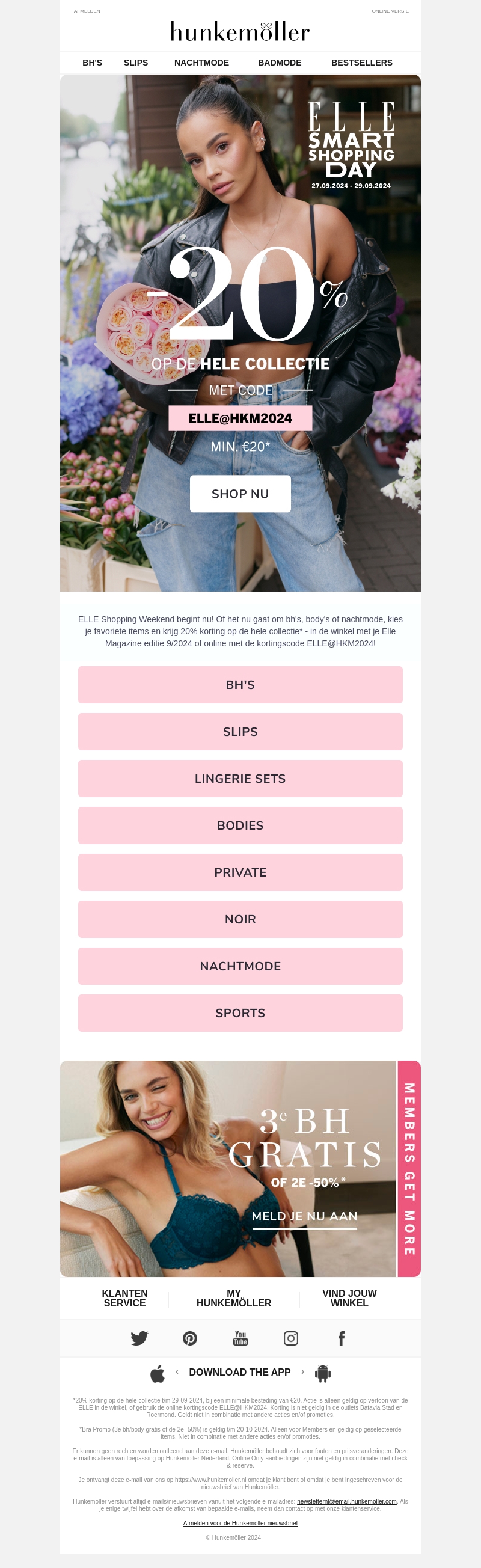 ELLE Shopping Weekend is hier! Ontvang 20% korting op de hele collectie bij Hunkemöller met de kortingscode ELLE@HKM2024. Of je nu op zoek bent naar bh's, slips, lingerie sets of nachtkleding, je vindt het allemaal bij Hunkemöller. Mis deze kans niet en shop nu jouw favorieten met korting.