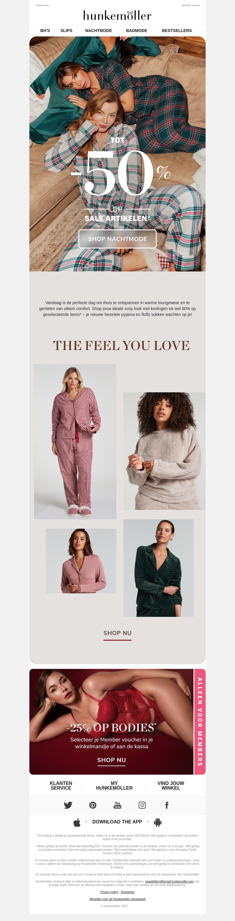 Hunkemöller biedt nu tot 50% korting op geselecteerde nachtmode. Vind de perfecte pyjama of comfortabele loungewear voor ontspannen avonden. Deze aanbieding geldt voor een beperkte tijd, dus sla snel je slag. Vergeet niet je Member voucher voor extra kortingen. Ontdek de collectie en geniet van optimaal comfort. Shop nu en bespaar groot!