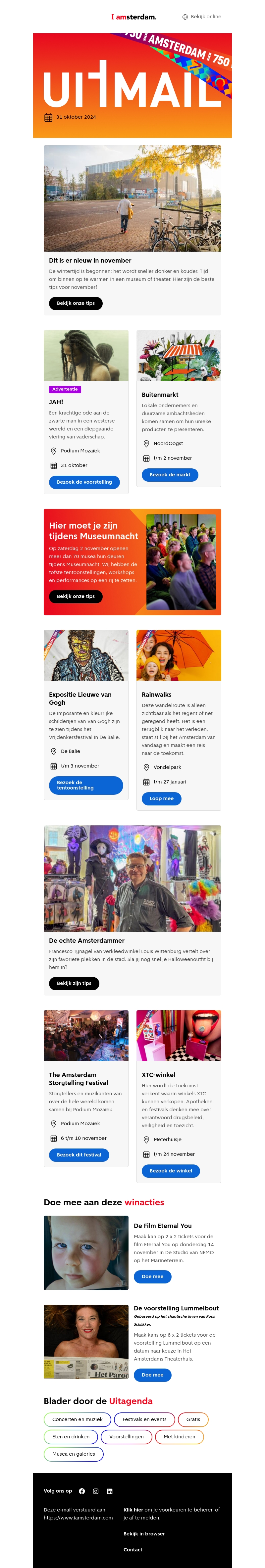 Ontdek wat er nieuw is in november in Amsterdam. Geniet van unieke tentoonstellingen en evenementen, met bijzondere aandacht voor Museumnacht. Mis de kans niet om geweldige winacties te verkennen en een kijkje te nemen in lokale markten en festivals.