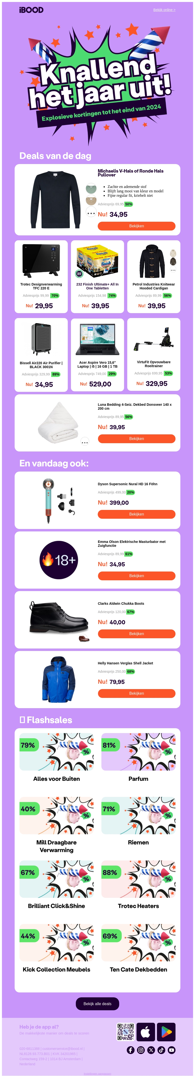 Knal het jaar uit met explosieve kortingen op Michaelis V-Hals of Ronde Hals Pullovers voor slechts €34,95. Geniet van dagaanbiedingen en flashsales met hoge kortingen op diverse producten zoals dekbedden, laptops en meer. Mis deze unieke kans niet om uw favoriete items aan te schaffen tegen voordelige prijzen.