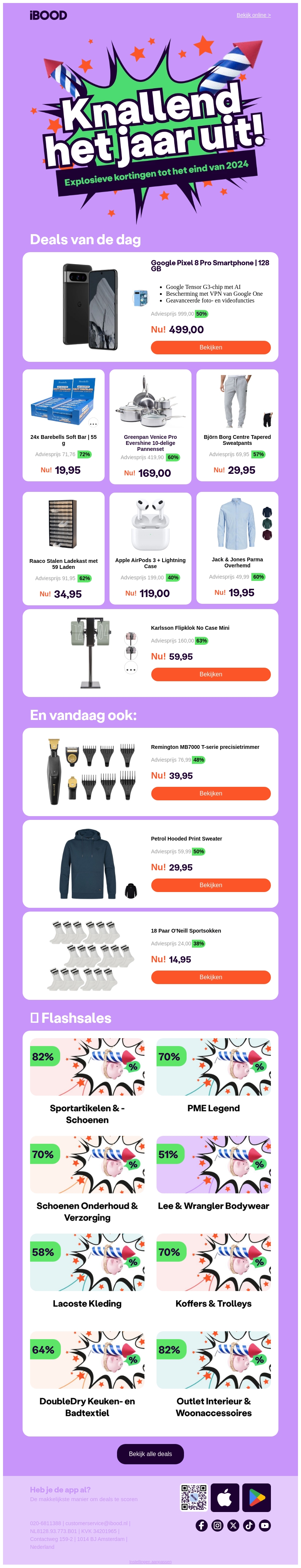 Laat je jaar knallend eindigen met de Google Pixel 8 Pro smartphone voor slechts €499. Profiteer van ongekende kortingen op diverse producten zoals kleding, elektronica en huishoudelijke artikelen. Mis de unieke flashsales niet met kortingen tot 82%!