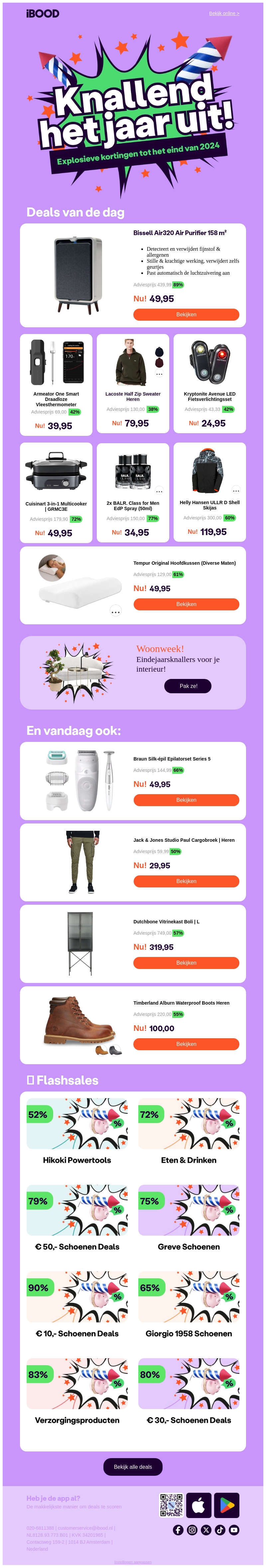 Mis de Eindejaarsknallers niet! Ontdek de Bissell Air320 Luchtreiniger voor slechts €49,95. Verken ook andere geweldige aanbiedingen zoals de Armband Oro Smart Thermometer en Helly Hansen ULLR 3. Ga snel naar de deals op iBOOD en bespaar flink!