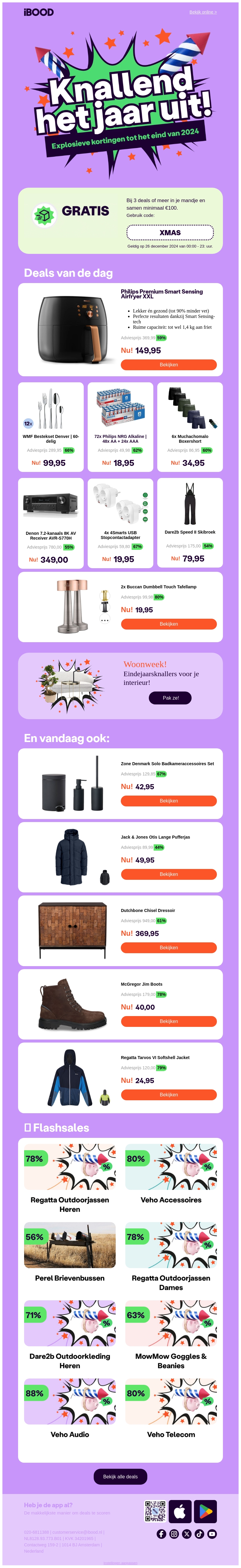 Profiteer van spectaculaire deals tijdens 'Knallend het jaar uit'. Ontvang gratis verzending op tweede kerstdag bij aankopen van drie items of meer ter waarde van minimaal €100. Geniet van kortingen op dagdeals, flashsales, en laat je inspireren door de nieuwste interieurmusthaves. Mis het niet en koop nu! Alle aanbiedingen zijn geldig tot het eind van 2024.