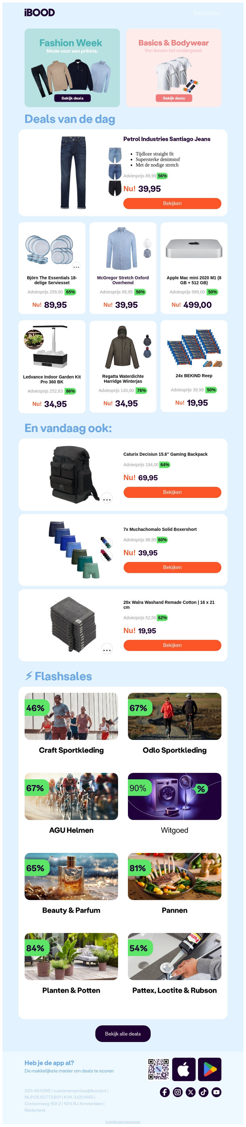 Mis de kans niet om de stijlvolle Petrol Industries Santiago Jeans aan te schaffen voor slechts €39,95 tijdens iBOOD Fashion Week. Deze jeans biedt een tijdloze straight fit, superzachte denimstof en de nodige stretch. Bekijk ook andere aanbiedingen zoals Apple Mac Mini, Craft sportkleding, en meer. Profiteer van kortingen tot wel 90% op diverse producten. Maak je klaar om te besparen!