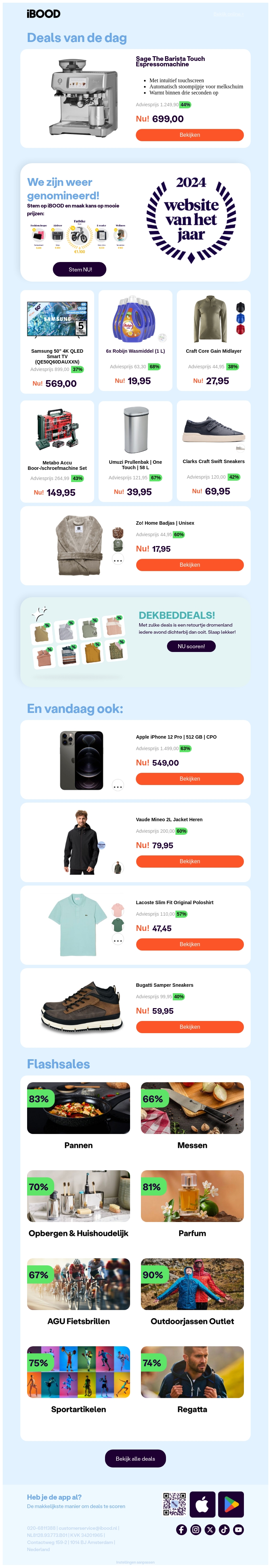 Beleef de luxe van een perfecte espresso met de Sage Barista Touch Espressomachine, nu tegen een speciaal tarief. Profiteer van kortingen op de Metabo Accu Boor-/schroefmachine Set en de stijlvolle Umuzi Prullenbak. Mis ook de geweldige aanbiedingen op sneakers en kleding niet. Haal vandaag nog voordeel uit de flashsales!
