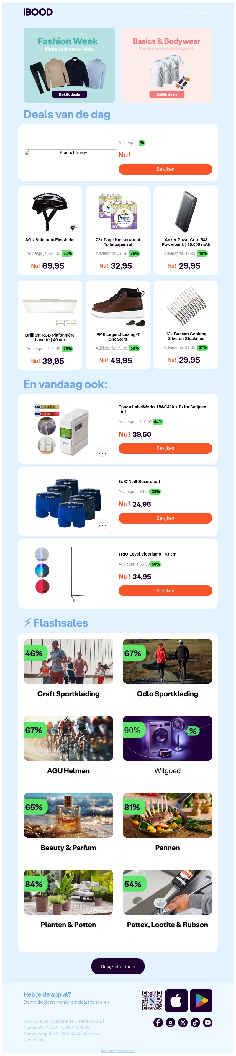 Bij iBOOD vind je vandaag geweldige deals op mode, gadgets en huishoudelijke items. Profiteer van kortingen op essentials zoals AGU fietshelmen, PME Legend sneakers en meer. Mis de unieke flashsales met kortingen tot wel 90% niet! Zorg dat je niets mist en scoor de beste aanbiedingen van de dag.