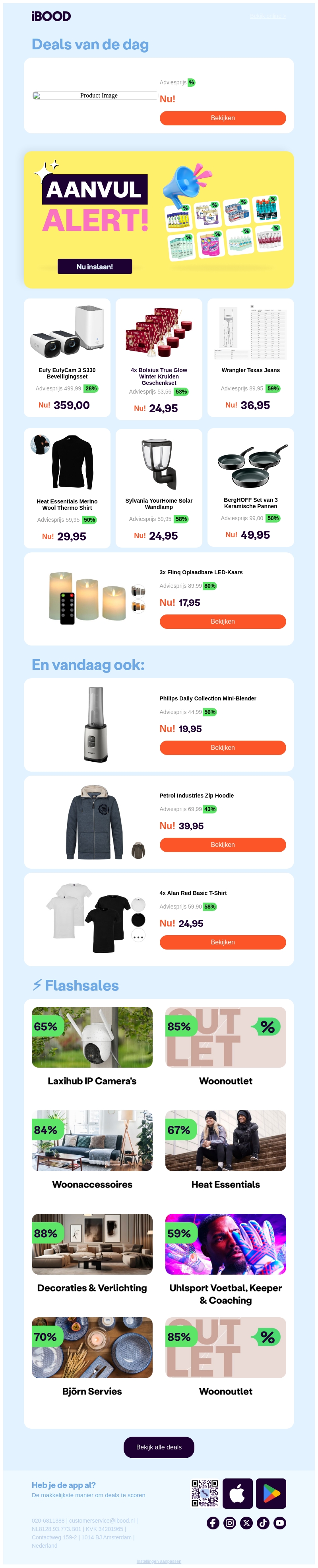 Mis de beste deals van de dag niet met iBOOD's exclusieve aanbiedingen. Bespaar op essentials zoals beveiligingscamera's en keukengerei. Ontdek ook de flashsales met kortingen tot 88%. Shop nu en profiteer van de laagste prijzen!