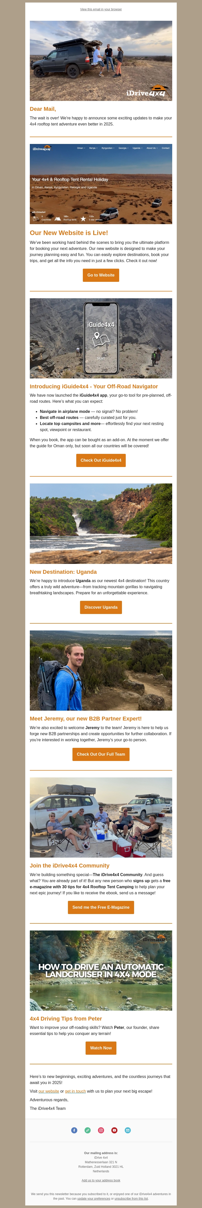 Maak je 4x4 offroad-reisplannen beter met onze gloednieuwe website en app. Verken prachtige bestemmingen zoals Uganda en profiteer van handige navigatietools. Sluit je aan bij de iDrive4x4-community en leer van experts zoals Peter en Jeremy. Bekijk onze tips voor offroad-rijden en plan je avontuur voor 2025!