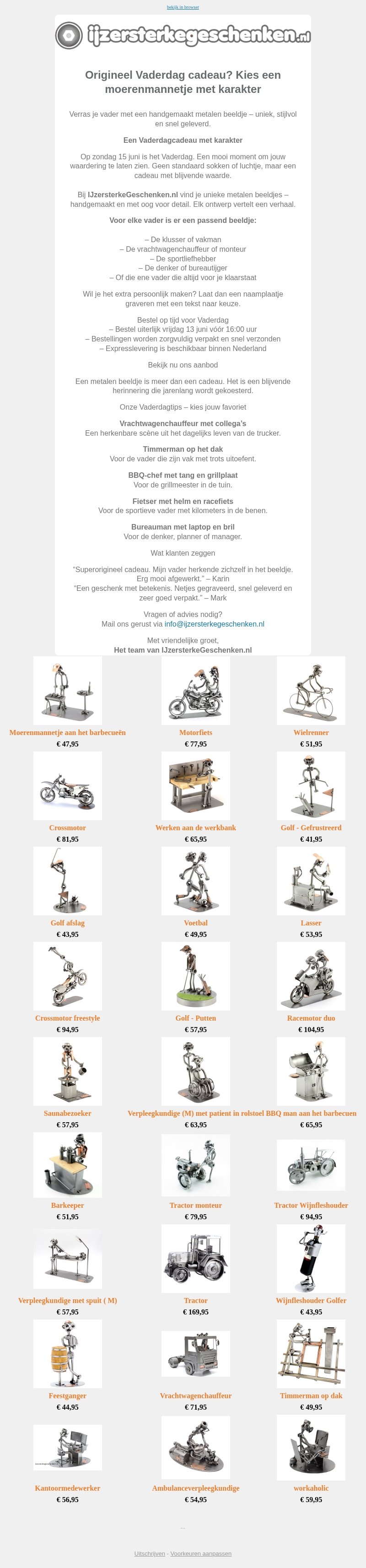 15% Korting voor onze nieuwsbriefabonnees op het hele Assortiment + Nieuwe Cadeau Beeldjes!