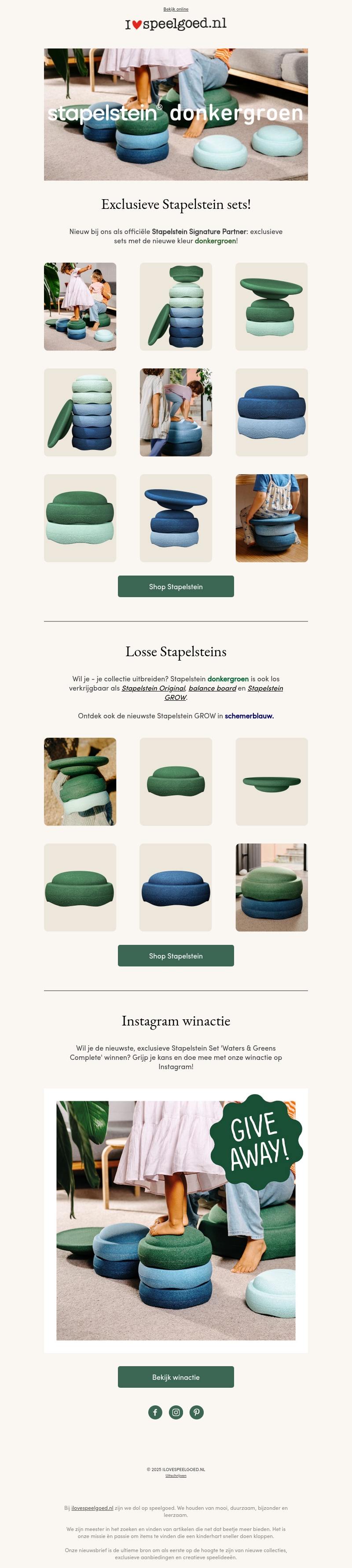Stap binnen in de wereld van Stapelstein met onze nieuwste, exclusieve sets in de kleur donkergroen. Of je nu je collectie wilt uitbreiden of een leuk cadeau zoekt, deze duurzame en veelzijdige stukken zijn perfect voor elk kind. Vergeet niet mee te doen aan onze Instagram winactie voor geweldige prijzen!