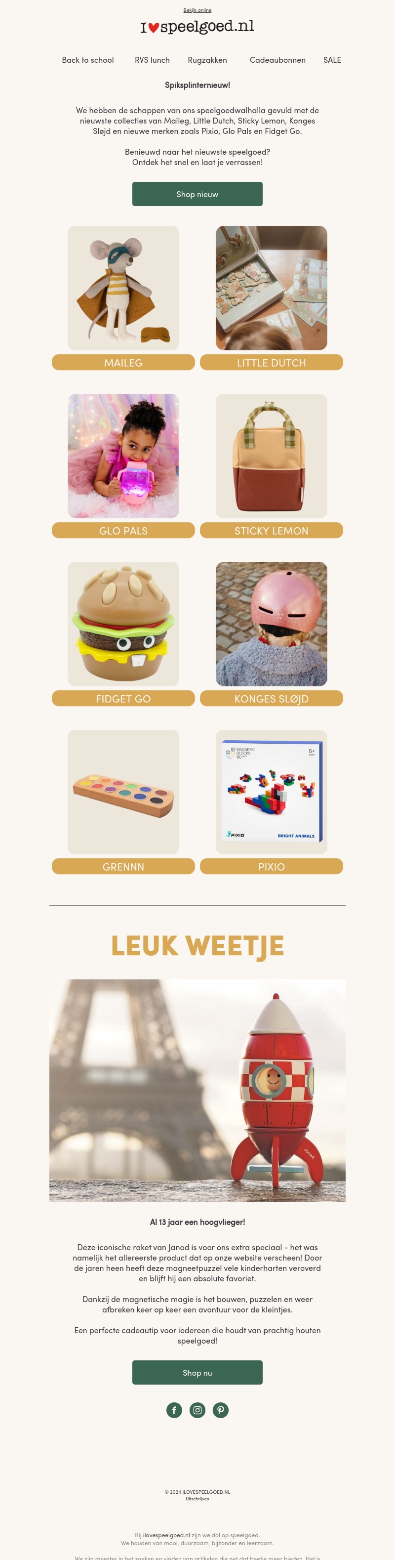We hebben de schappen gevuld met de nieuwste speelgoedcollecties van bekende merken zoals Maileg, Little Dutch, Sticky Lemon, en nog veel meer. Ontdek de nieuwste toevoegingen en laat je verrassen door het ruime aanbod. Bezoek onze website en shop de nieuwste collecties vandaag nog!