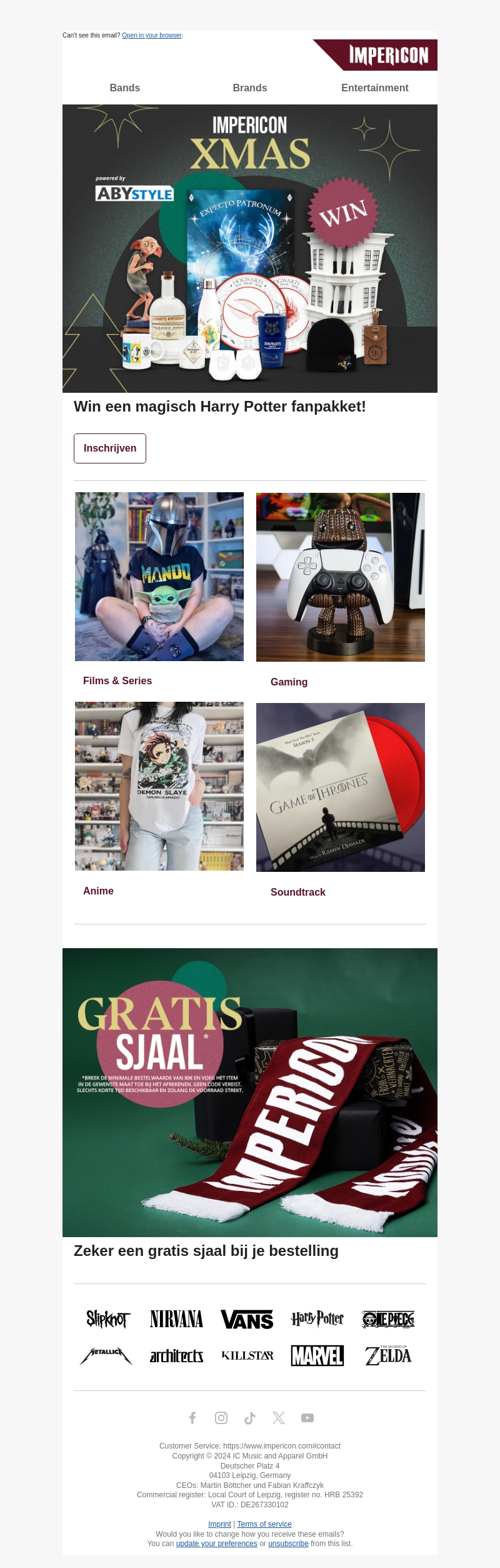 Ontdek de magie van Harry Potter met onze nieuwste winactie! We geven een fantastisch merchandise pakket weg dat elke fan zal bekoren. Schrijf je in en grijp je kans om exclusieve Harry Potter items te winnen. Mis deze kans niet om je collectie uit te breiden. Naast deze ongelooflijke actie krijg je ook een gratis sjaal bij je bestelling. Doe snel mee!