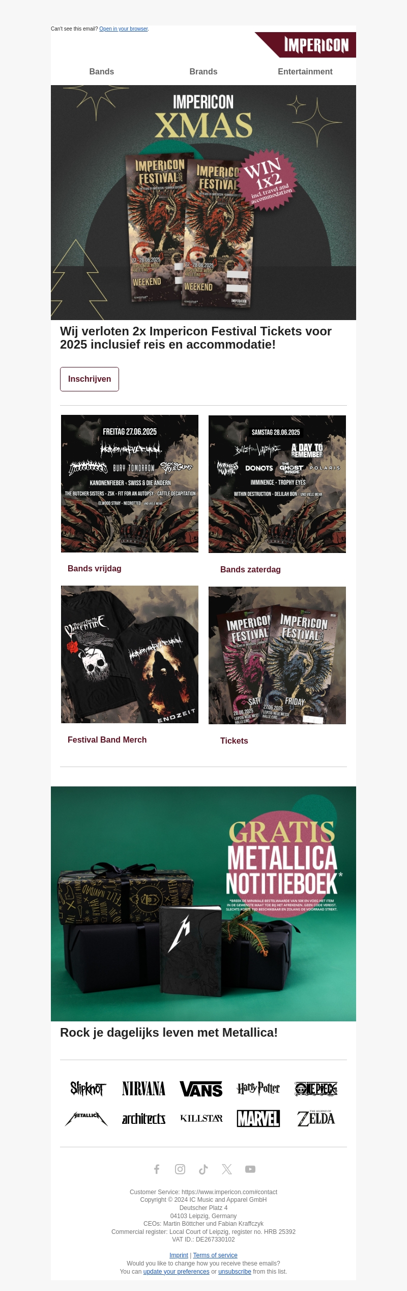 Maak kans op 2 tickets voor het Impericon Festival 2025 inclusief reis en verblijf! Wees erbij en geniet van onvergetelijke optredens. Schrijf je snel in om deel te nemen aan deze fantastische giveaway. Het festival vindt plaats op 27 en 28 juni 2025 met topbands op het programma. Laat deze kans niet voorbijgaan en beleef een muzikaal avontuur.