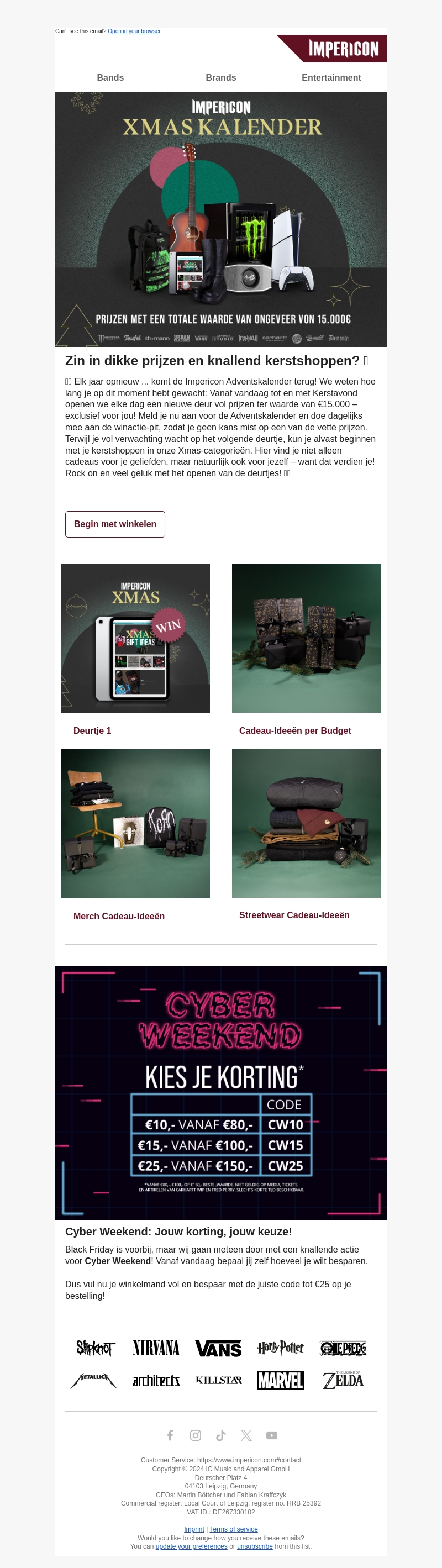 De Impericon Adventskalender is terug met prijzen ter waarde van €15.000! Elke dag tot Kerst openen we een nieuwe deur voor fantastische prijzen. Ontdek daarnaast kortingen tijdens Cyber Weekend met codes tot €25 korting. Mis deze kans niet om je aankopen te doen met geweldige besparingen!