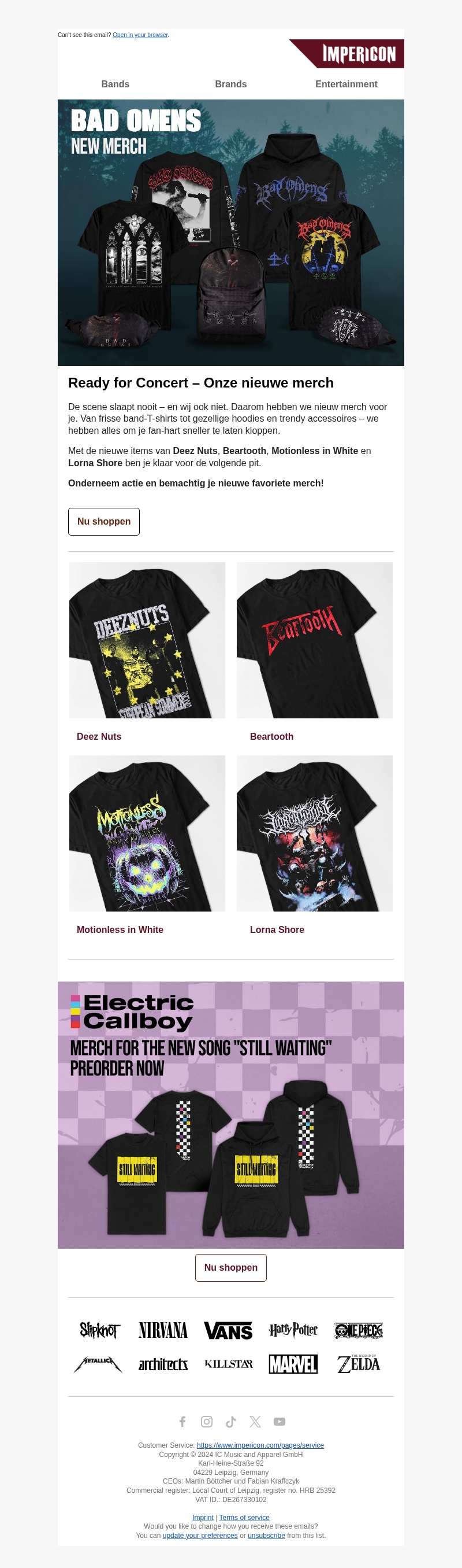 🔥New-in: Merch drops van Lorna Shore, Bad Omens, Beartooth & co