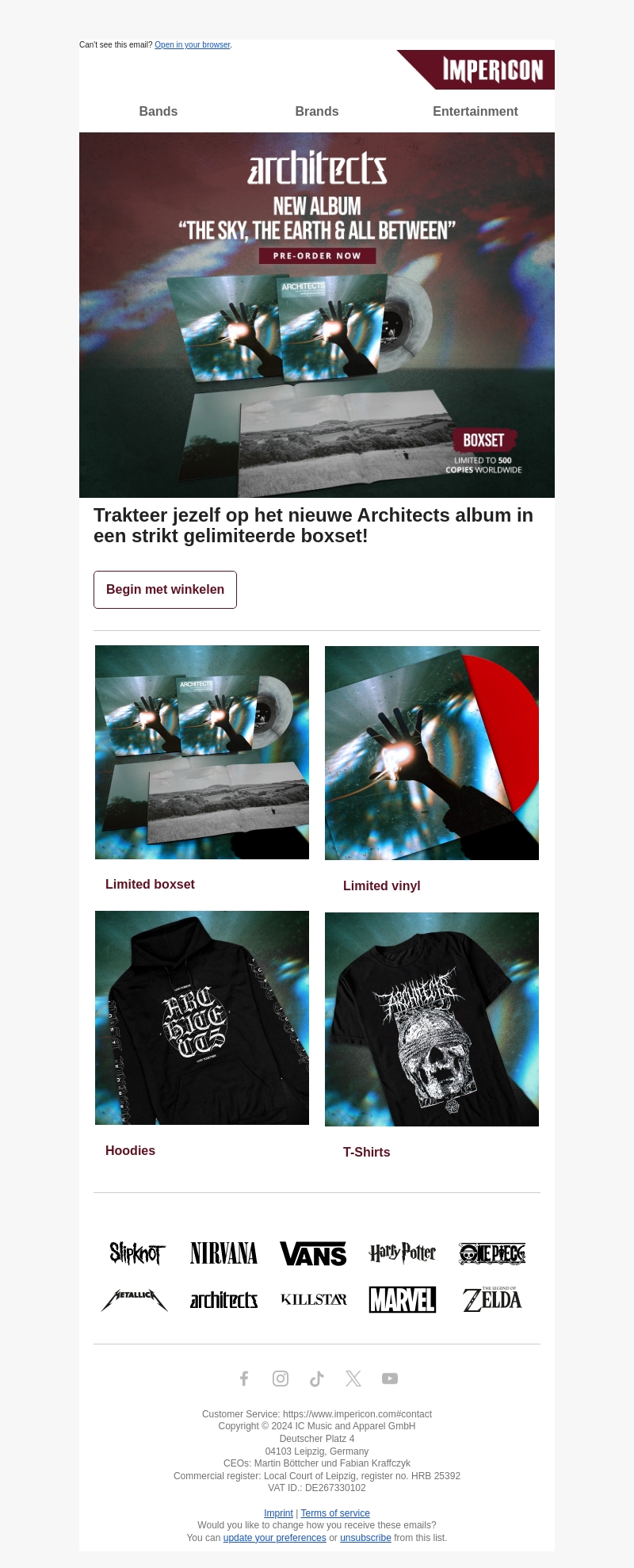 Trakteer jezelf op de nieuwe Architects boxset, streng beperkt tot slechts 500 exemplaren wereldwijd. Geniet van exclusieve vinyl en unieke merchandise zoals hoodies en T-shirts. Bestel nu en mis deze unieke kans niet!