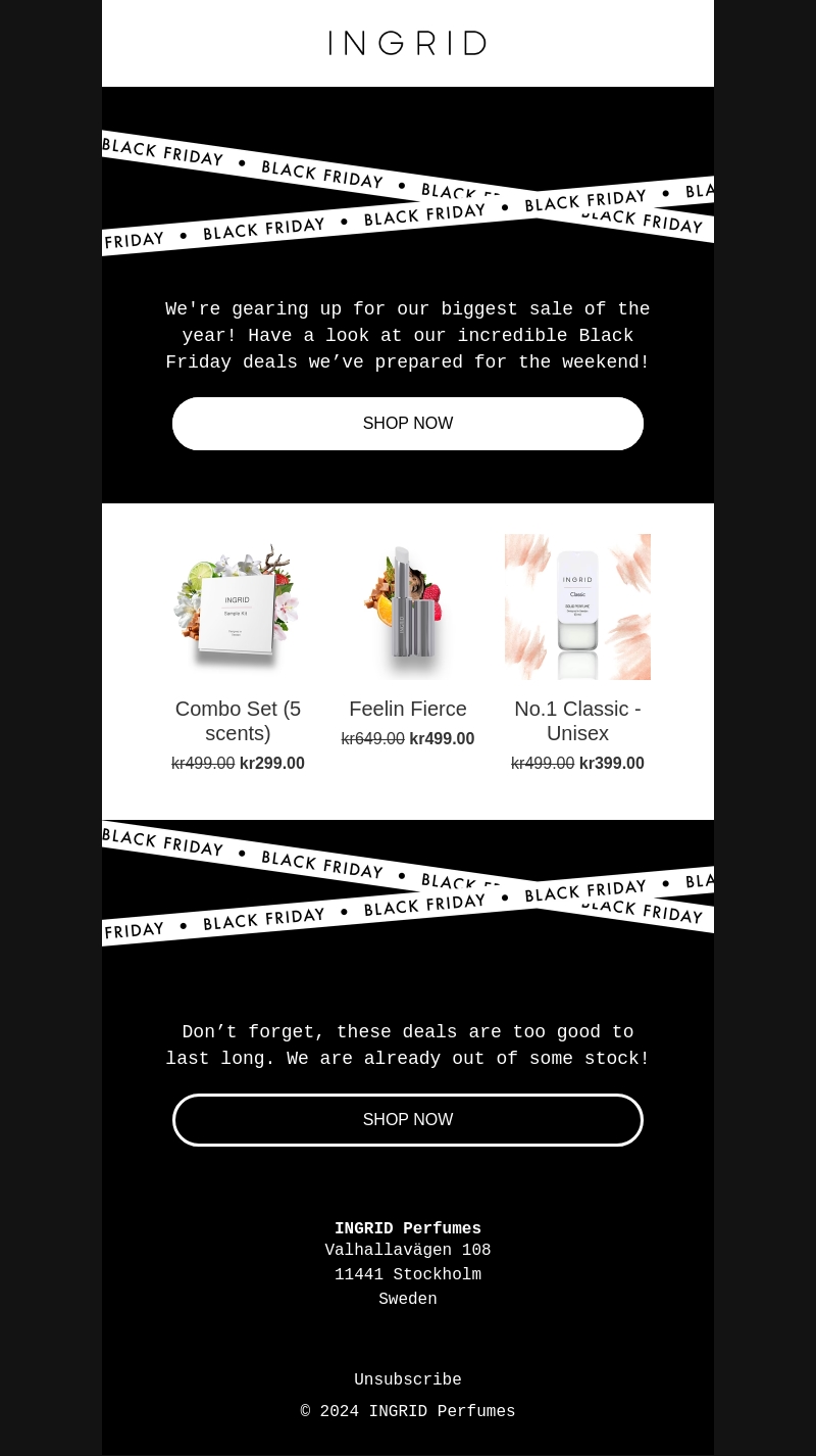 Bereid je voor op de grootste uitverkoop van het jaar met de geweldige Black Friday deals van Ingrid. Van geuren tot setjes, er is voor ieder wat wils. Deze aanbiedingen zijn te goed om te missen en raken snel uitverkocht. Bekijk ons assortiment en shop nu om teleurstelling te voorkomen. Wees er snel bij, want de voorraad is beperkt!