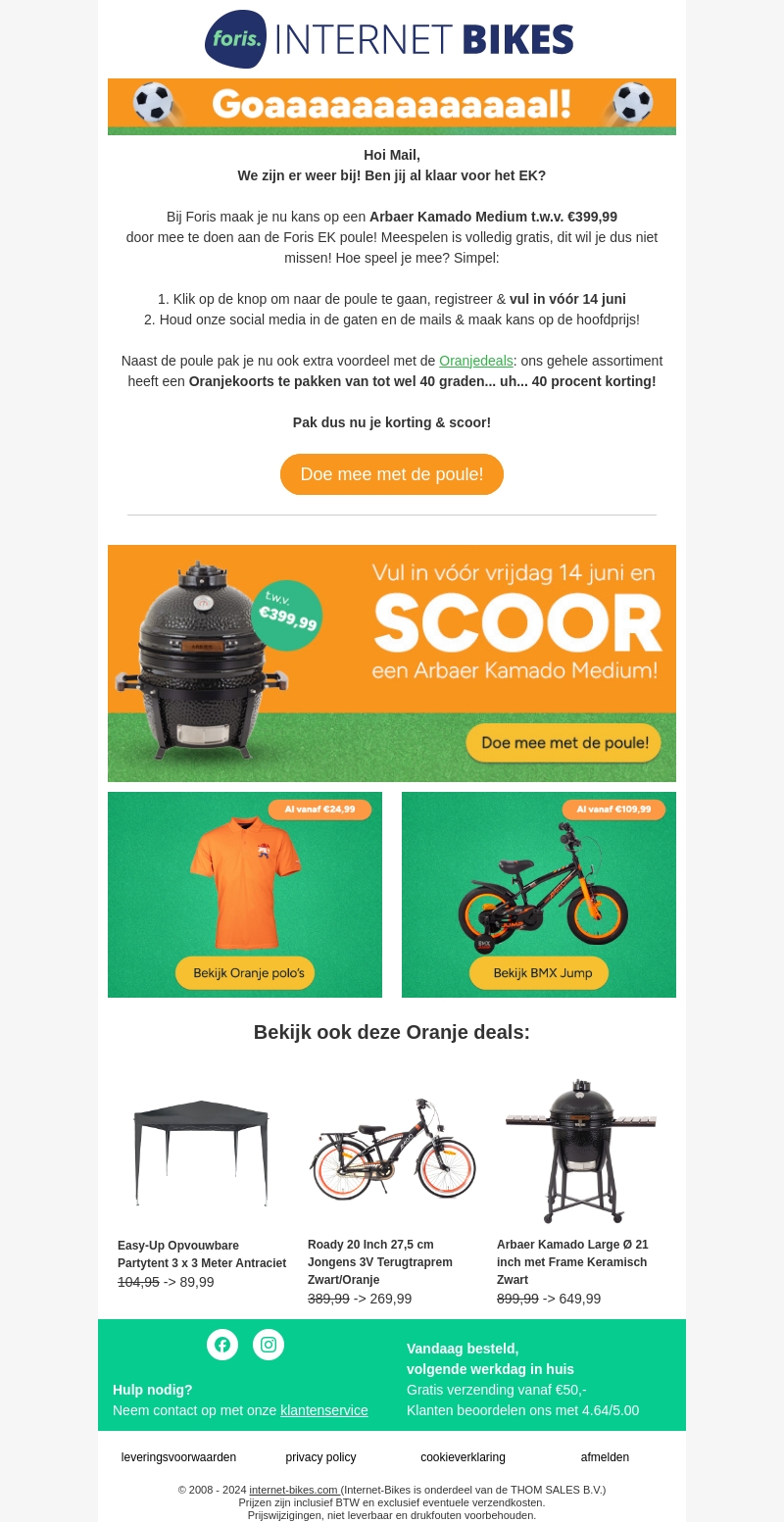 Bij Foris maak je nu kans op een Arbær Kamado Medium t.w.v. €399,99 door mee te doen aan de Foris EK poule! Vul in voor 14 juni en speel mee gratis. Mis het niet en bekijk ook onze speciale Oranjedeals met flinke kortingen!