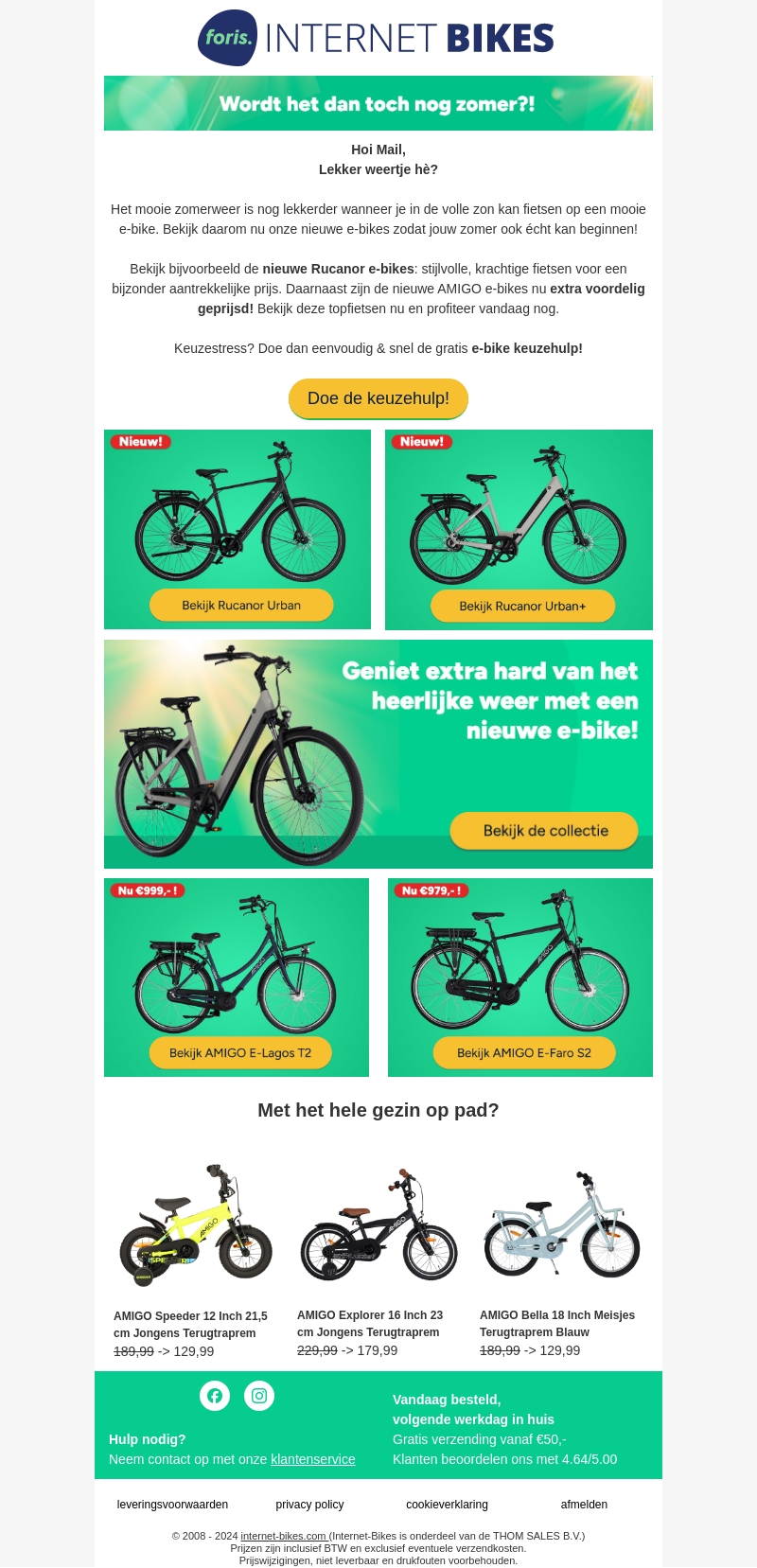 Het zomerse weer is er eindelijk! Maak je klaar om te fietsen met de nieuwste Rucanor en AMIGO e-bikes. Stijlvol, krachtig en nu extra voordelig geprijsd. Bekijk de topfietsen en profiteer vandaag nog!