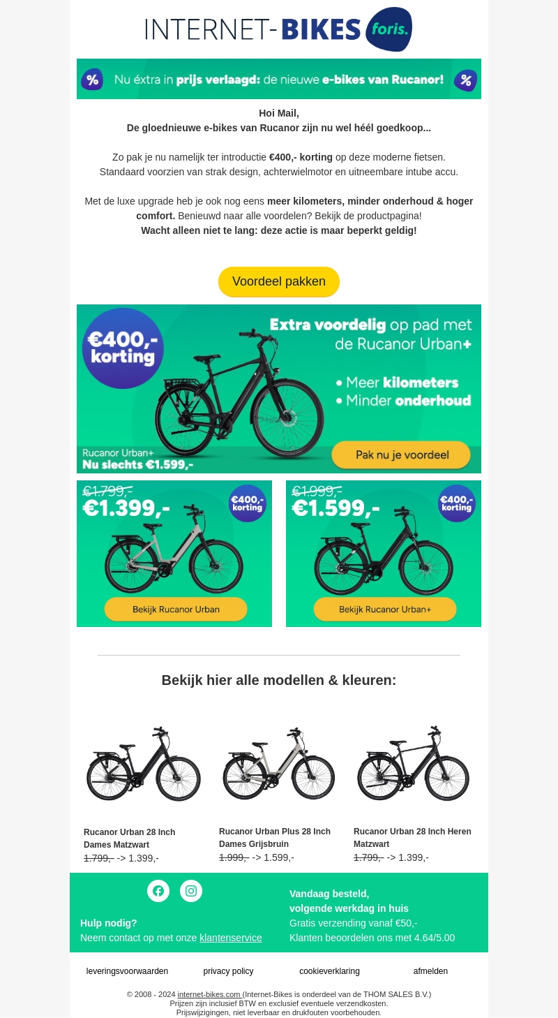 De gloednieuwe e-bikes van Rucanor zijn nu beschikbaar met een spectaculaire korting van €400. Deze moderne fietsen bieden een strak design, achterwielmotor en een uitneembare intube accu. Ontdek alle voordelen en kies uit verschillende modellen en kleuren. Wees er snel bij, deze actie is tijdelijk!