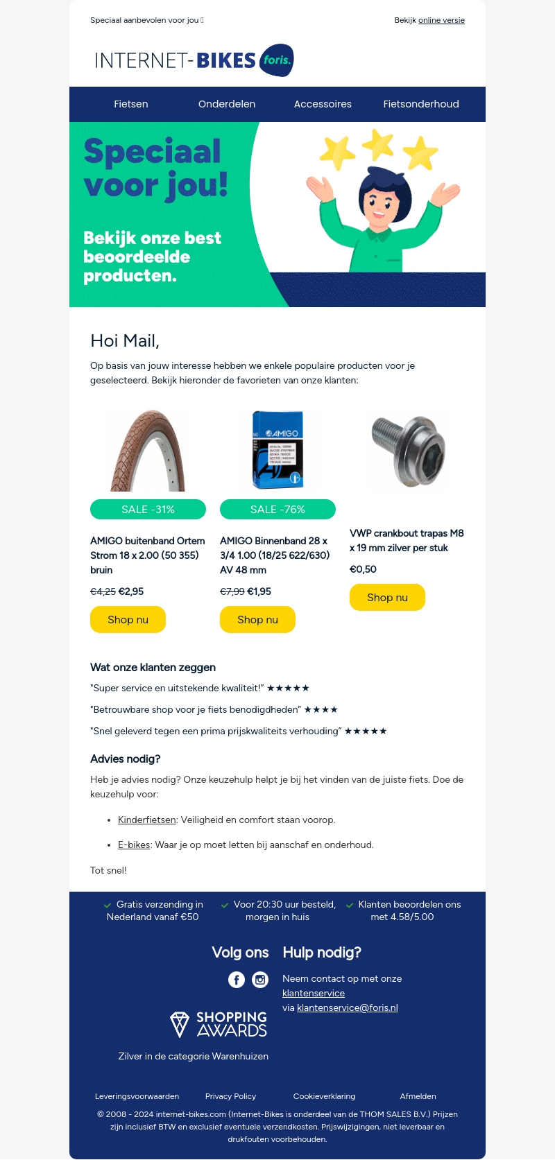 Welkom bij onze exclusieve selectie van fietsproducten, speciaal aanbevolen voor jou! Profiteer van kortingen tot 76% op populaire items zoals AMIGO banden. Vertrouw op de uitstekende kwaliteit en klantenbeoordelingen van onze producten. Aarzel niet om onze keuzegids te raadplegen als je hulp nodig hebt bij het maken van een keuze. Bestel vandaag nog om van onze snelle levering te profiteren.