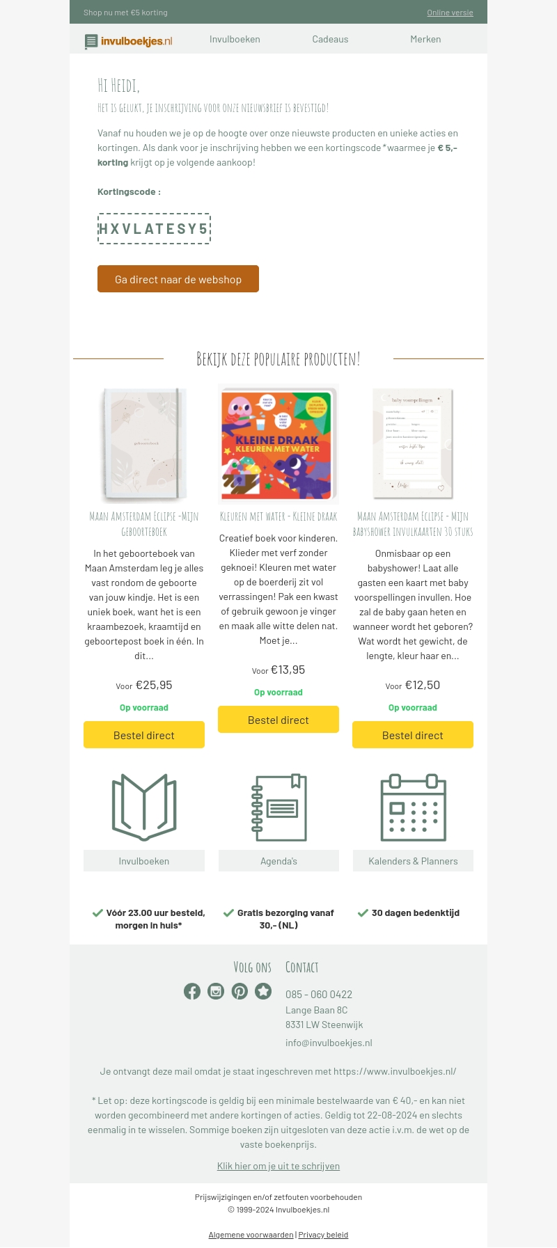 Gefeliciteerd, je inschrijving voor onze nieuwsbrief is bevestigd! Ontvang nu €5 korting op je volgende aankoop met de code HXVLAYESY5. Bekijk onze nieuwste producten en aanbiedingen. Bestel nu en profiteer van snelle bezorging en 30 dagen bedenktijd.