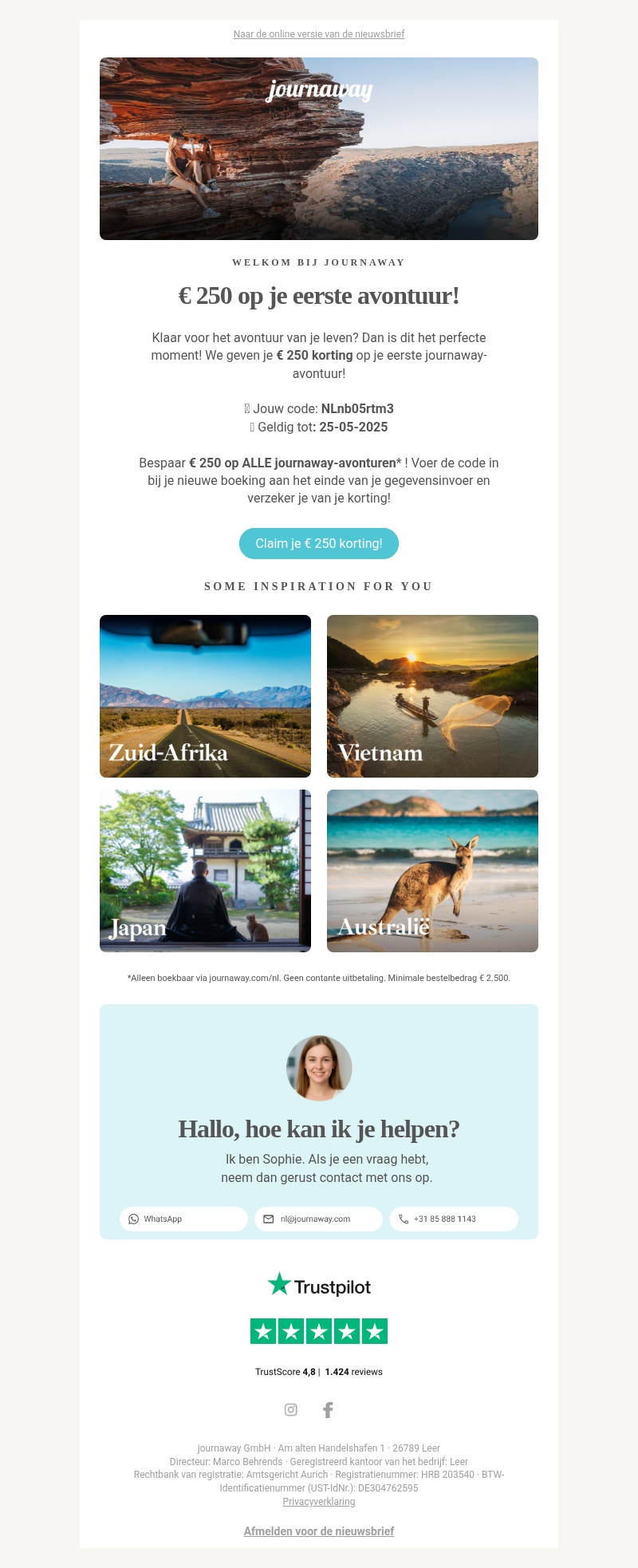 β¬ 250 korting op je eerste reis! π
