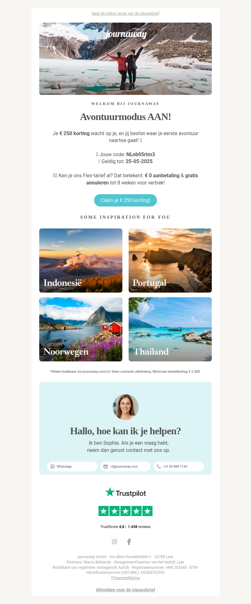 Je β¬ 250 kortingsbon wacht op je β tijd om je reis te boeken! π