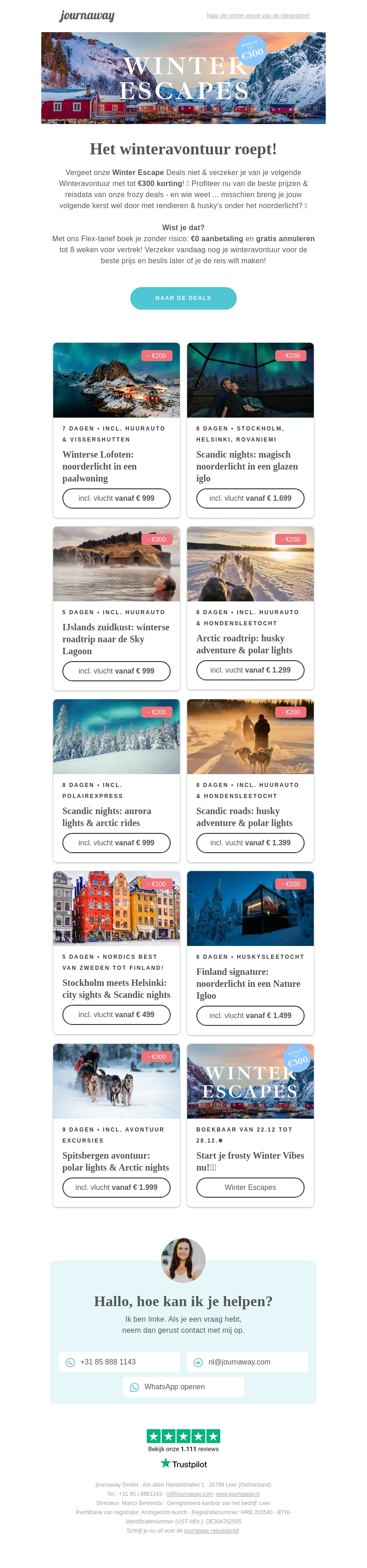 Verlies jezelf in de magie van de winter met onze exclusieve deals! Ervaar het noorderlicht in een glazen iglo of ga op huskysafari. Profiteer van kortingen tot €300. Boek zonder risico met flexibele annuleringsvoorwaarden. Het avontuur wacht!