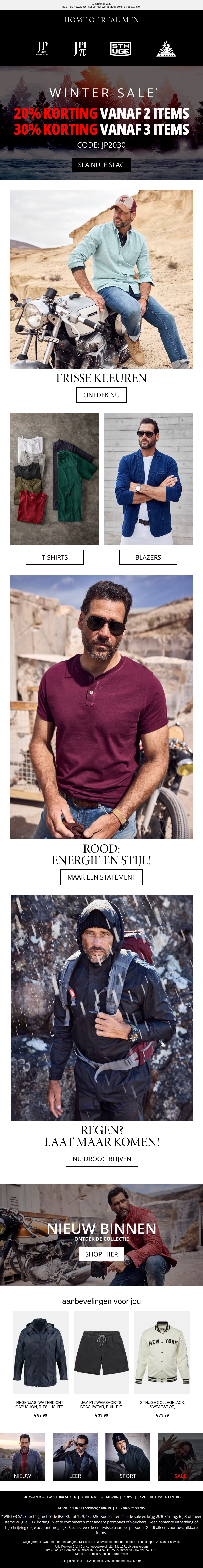 Duik in de Winter Sale met spectaculaire kortingen tot 30% bij aankoop van drie items. Van frisse kleuren en energieke rode tinten tot stoere regenkleding, de collectie biedt voor ieder wat wils. Ontdek ook de nieuwe collectie in stijlvolle ontwerpen. Grijp nu je kans en maak een statement met onze unieke modekeuzes.