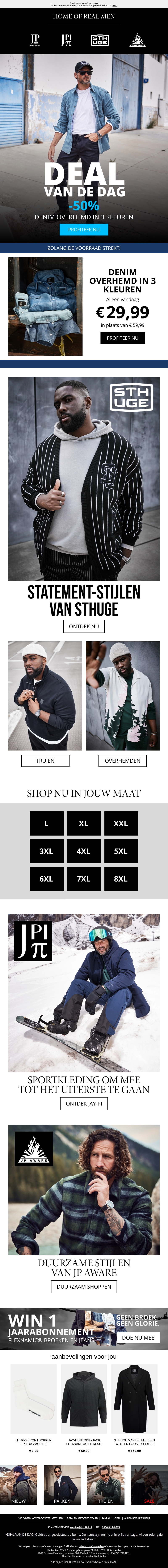 Profiteer van een korting van 50% op een stoer denim overhemd, verkrijgbaar in drie prachtige kleuren. Ontdek ook statement-stijlen van Sthuge en duurzame mode van JP Aware. Of je nu gaat voor casual of sportief, er is voor ieder wat wils.
