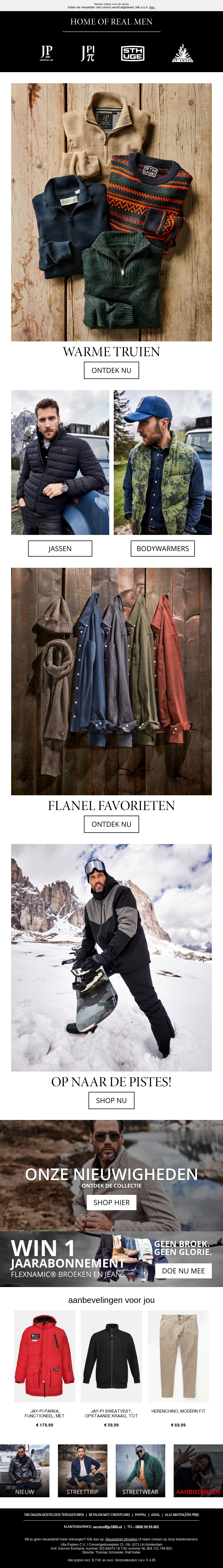 Bereid je voor op de herfst met onze warme truien. Van stijlvolle jassen tot comfortabele bodywarmers, er is voor ieder wat wils. Ontdek flanellen favorieten en essentiële kleding voor de piste. Mis de kans niet op een jaarabonnement met speciale kortingsaanbiedingen. Kijk snel voor de laatste nieuwigheden!